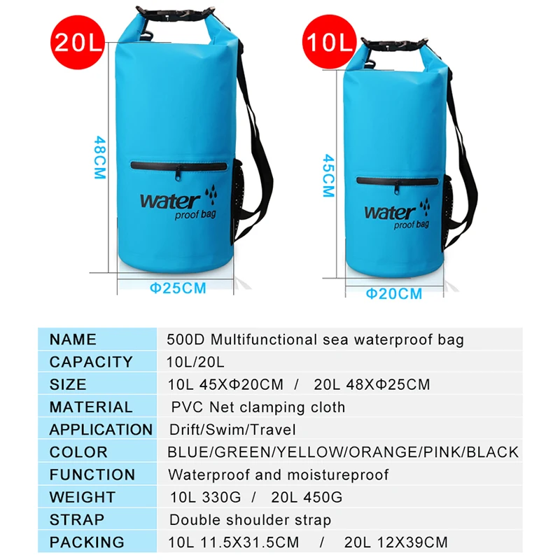 10L 20L Outdoor River trekking bag Double shoulder strap Swimming Waterproof Bags Ultralight Dry Or