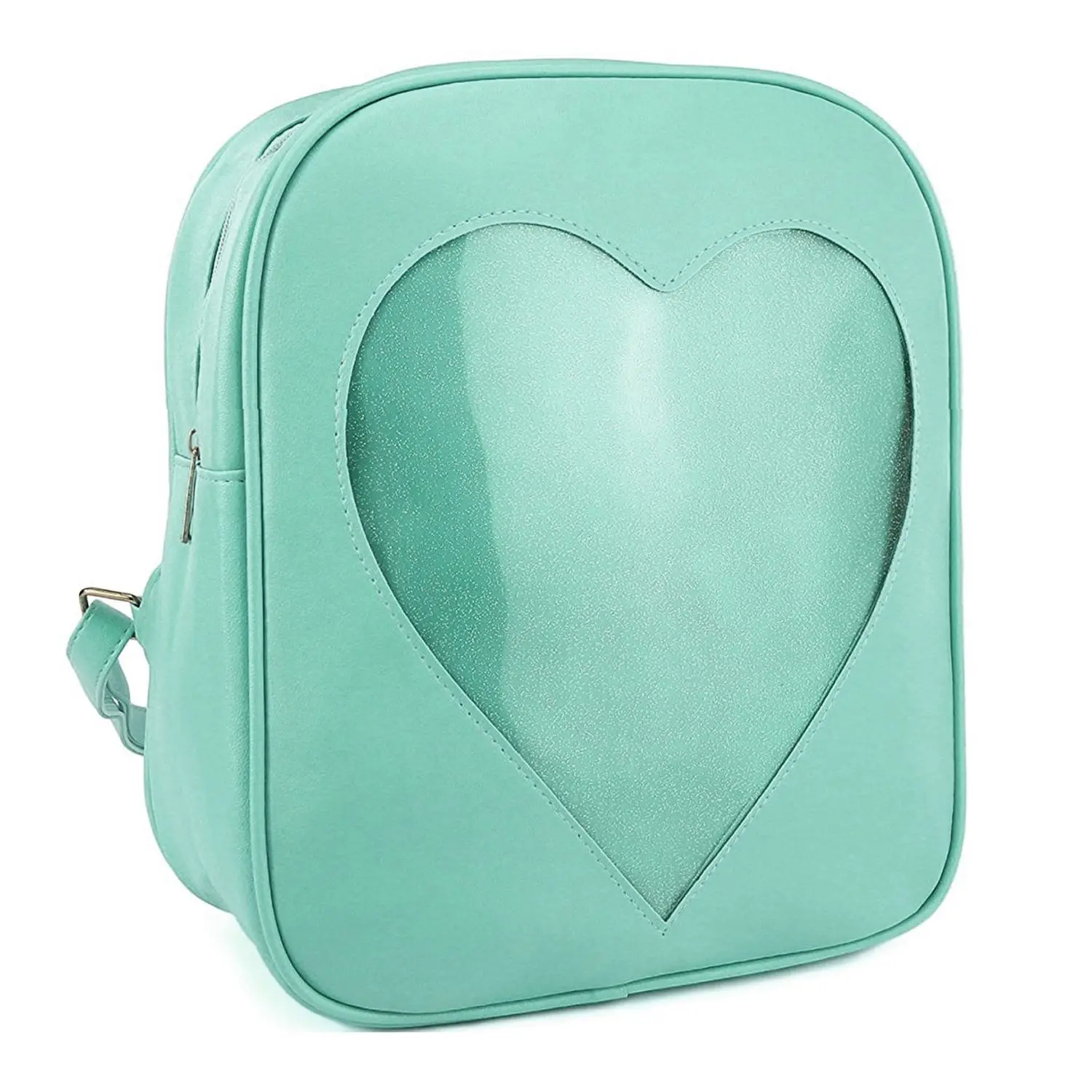 HIGH QUALITY Clear Candy Backpacks Transparent Love Heart School Bags for Teen Girls Kids Purse Bag(Green)