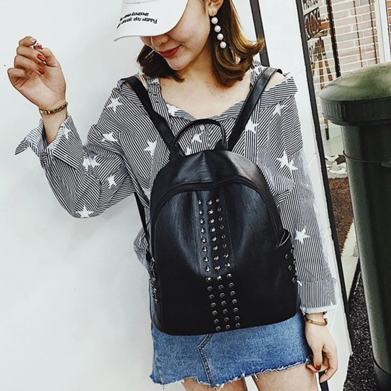 New Ladies Shoulder Bag Fashion Pu Leather Backpack Rivet Large Capacity Casual Wild Backpack
