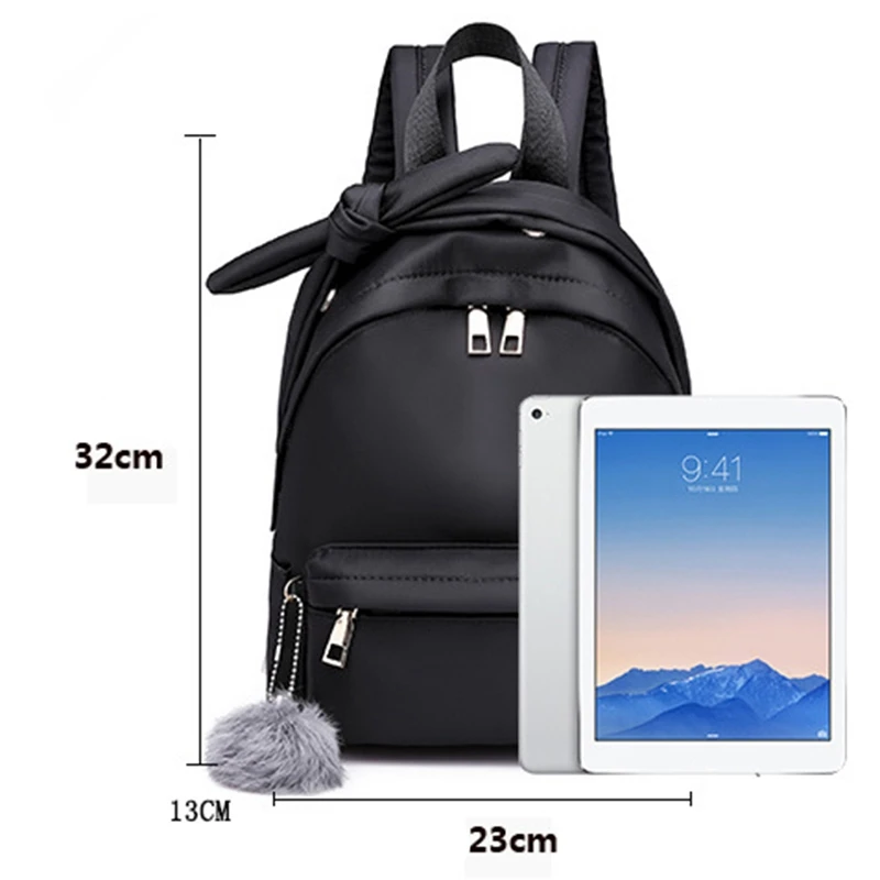 School Backpack Waterproof Simple Polyester Hairball Female Shoulder Bag Outdoor Women'S Bag Solid