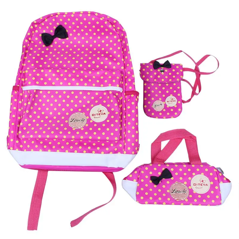 BEST QUALITY 3 Pcs/Set New waterproof Girl School Bags For Teenagers backpack women shoulder bags Rose Red