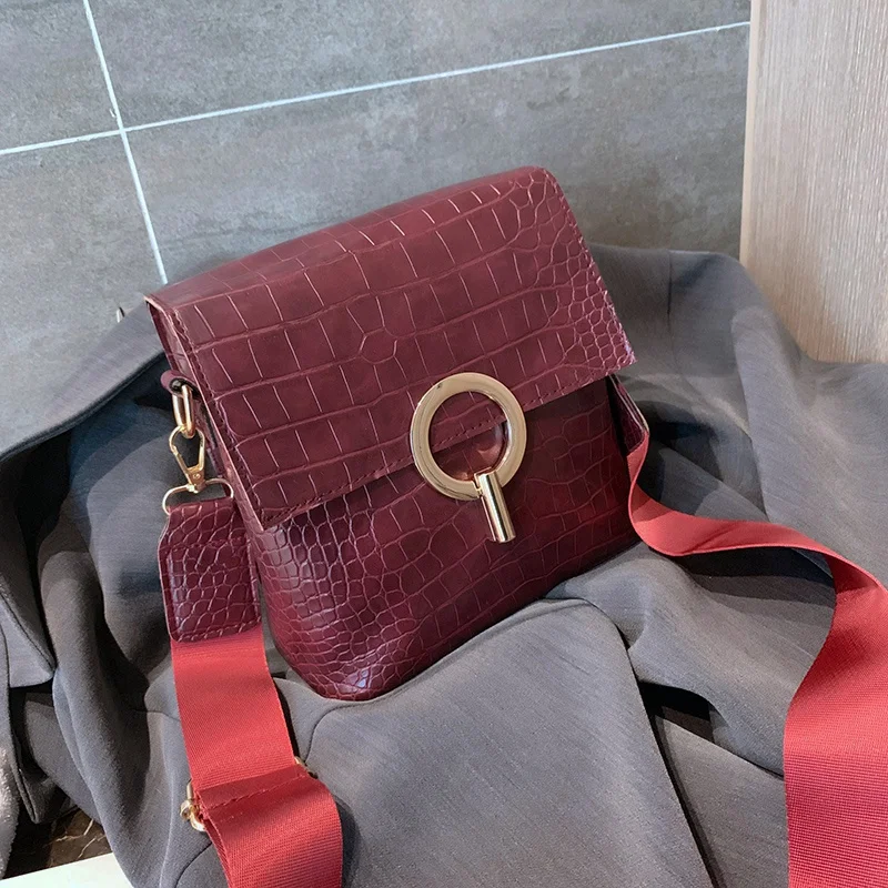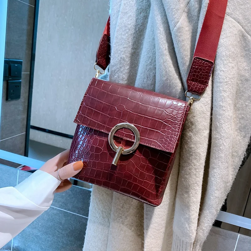 Crossbody Bags For Women Vintage Wide Straps Ladies Leather Shoulder Bag Female Small Messenger Bag