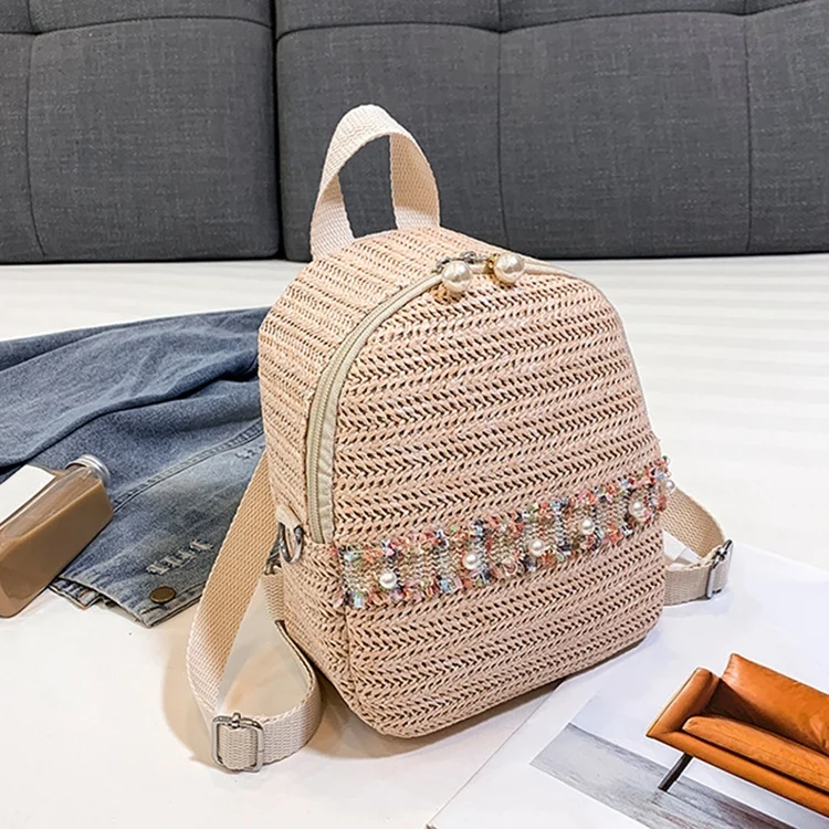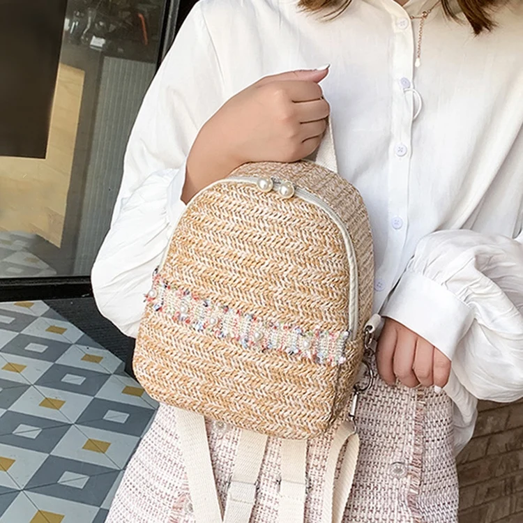 Straw Backpack Trendy Fashion Anti-Theft Small Backpack Women Fashion Mini Shoulder Bags Female Pea