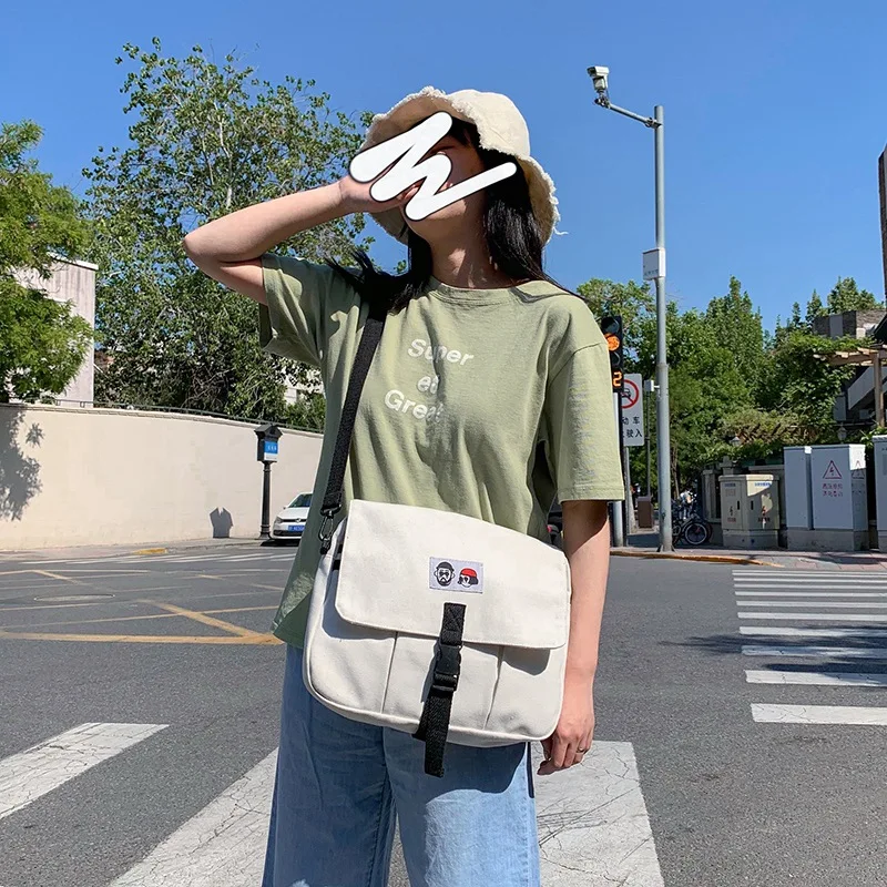 Review Canvas Bag School Style Student Schoolbag One Shoulder Messenger Small Square Bag Messenger Canvas