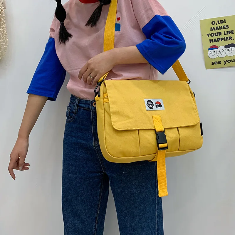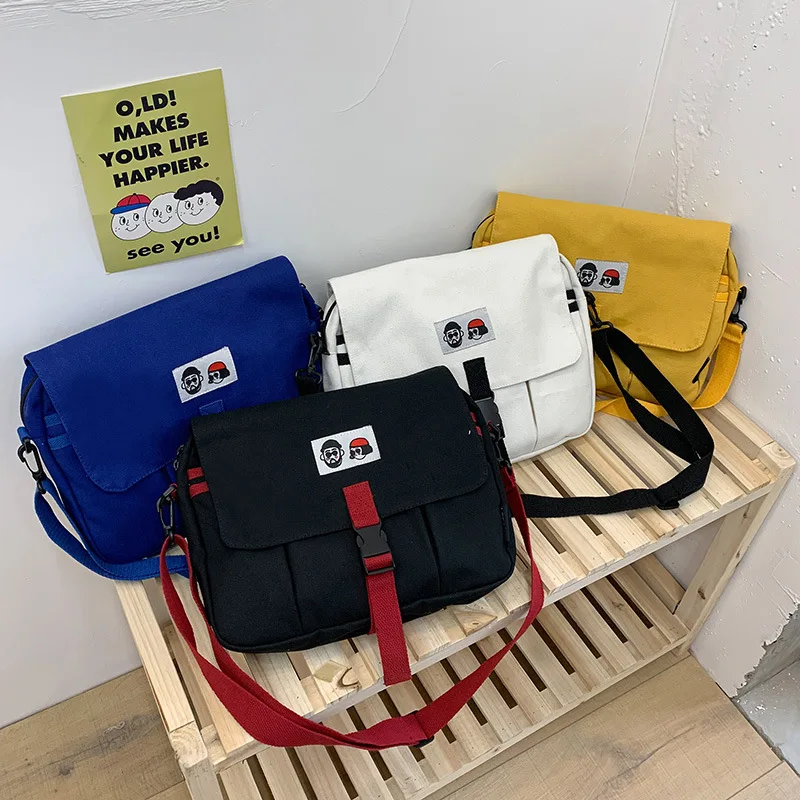 Canvas Bag School Style Student Schoolbag One Shoulder Messenger Small Square Bag Messenger Canvas